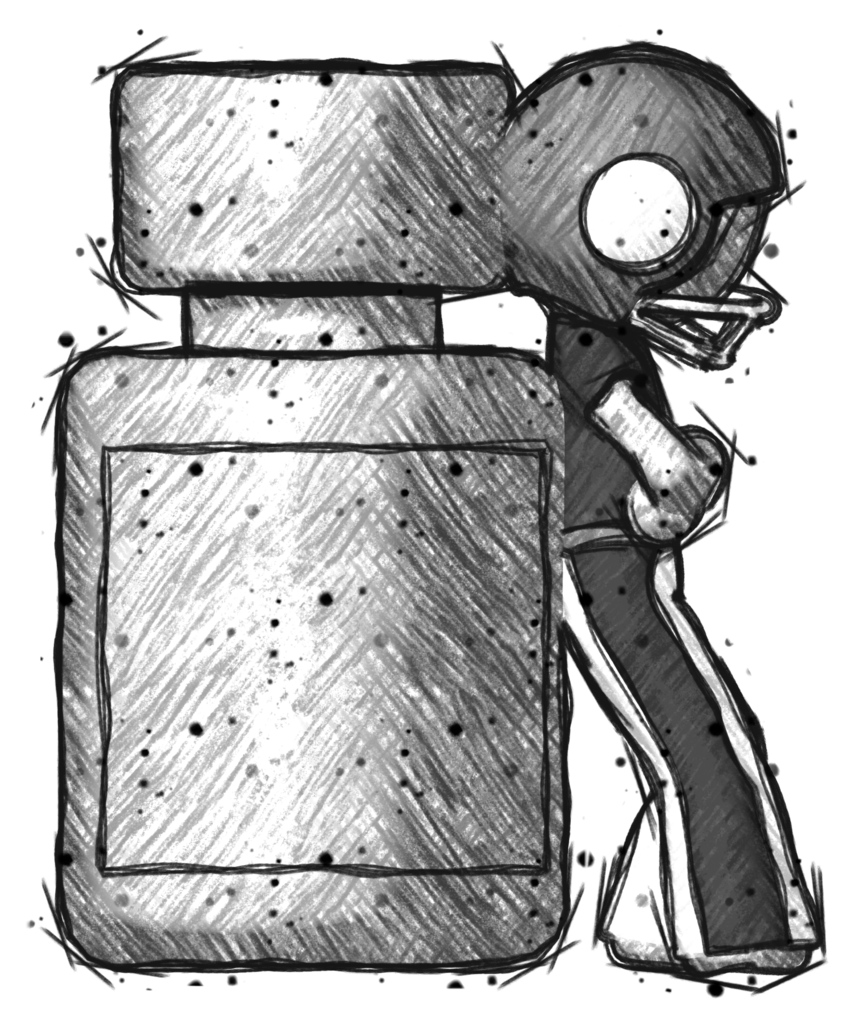 Sketch Football Player Man Leaning Against Large Medicine Bottle