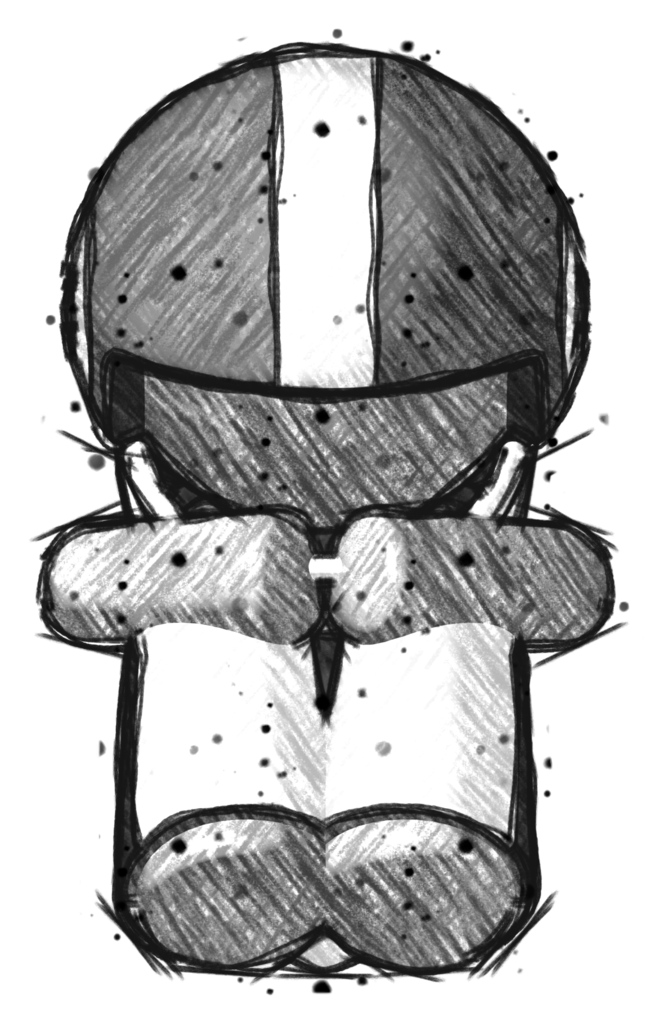 Sketch Football Player Man Sitting with Head Down Facing Forward