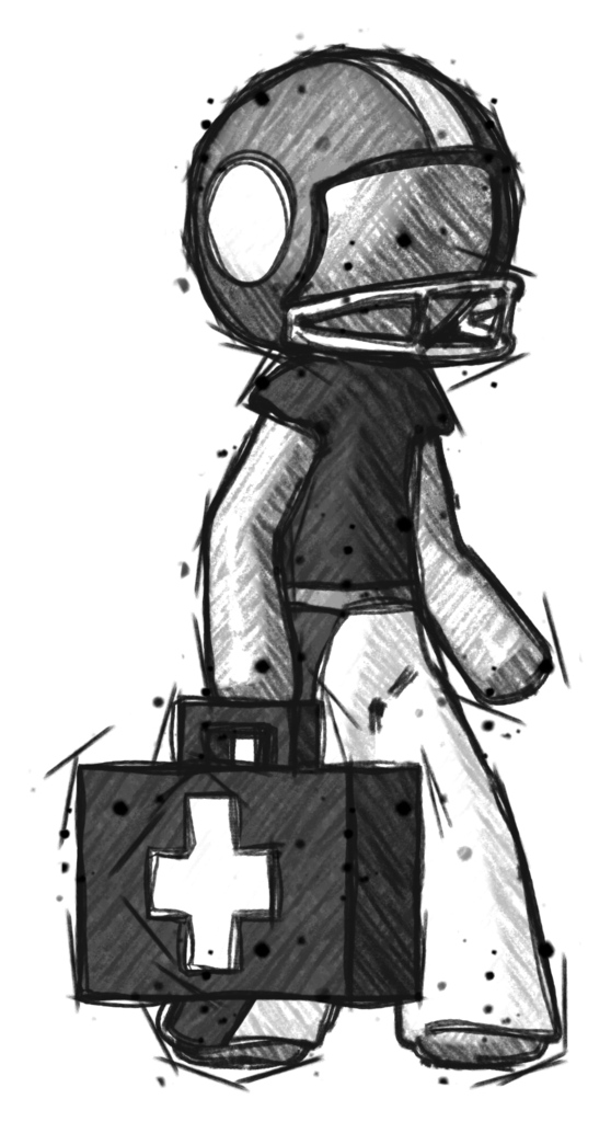 Sketch Football Player Man Walking With Medical Aid Briefcase To Right