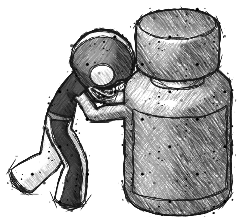 Sketch Football Player Man Pushing Large Medicine Bottle