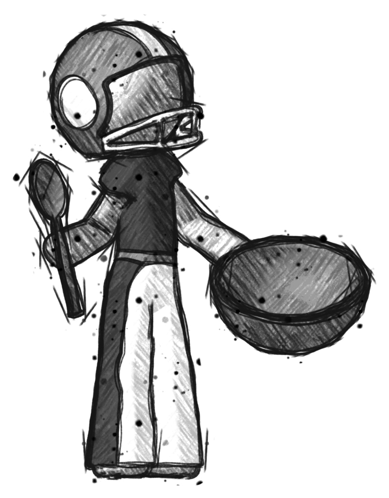 Sketch Football Player Man with empty bowl and spoon ready to make something