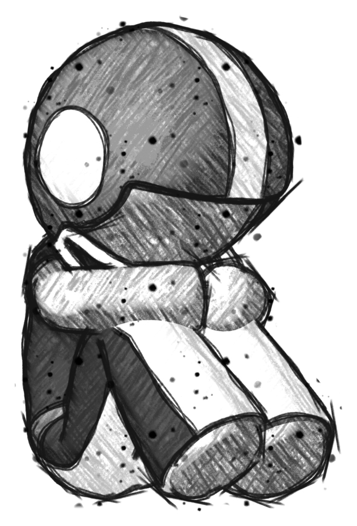 Sketch Football Player Man Sitting with Head Down Facing Angle Right