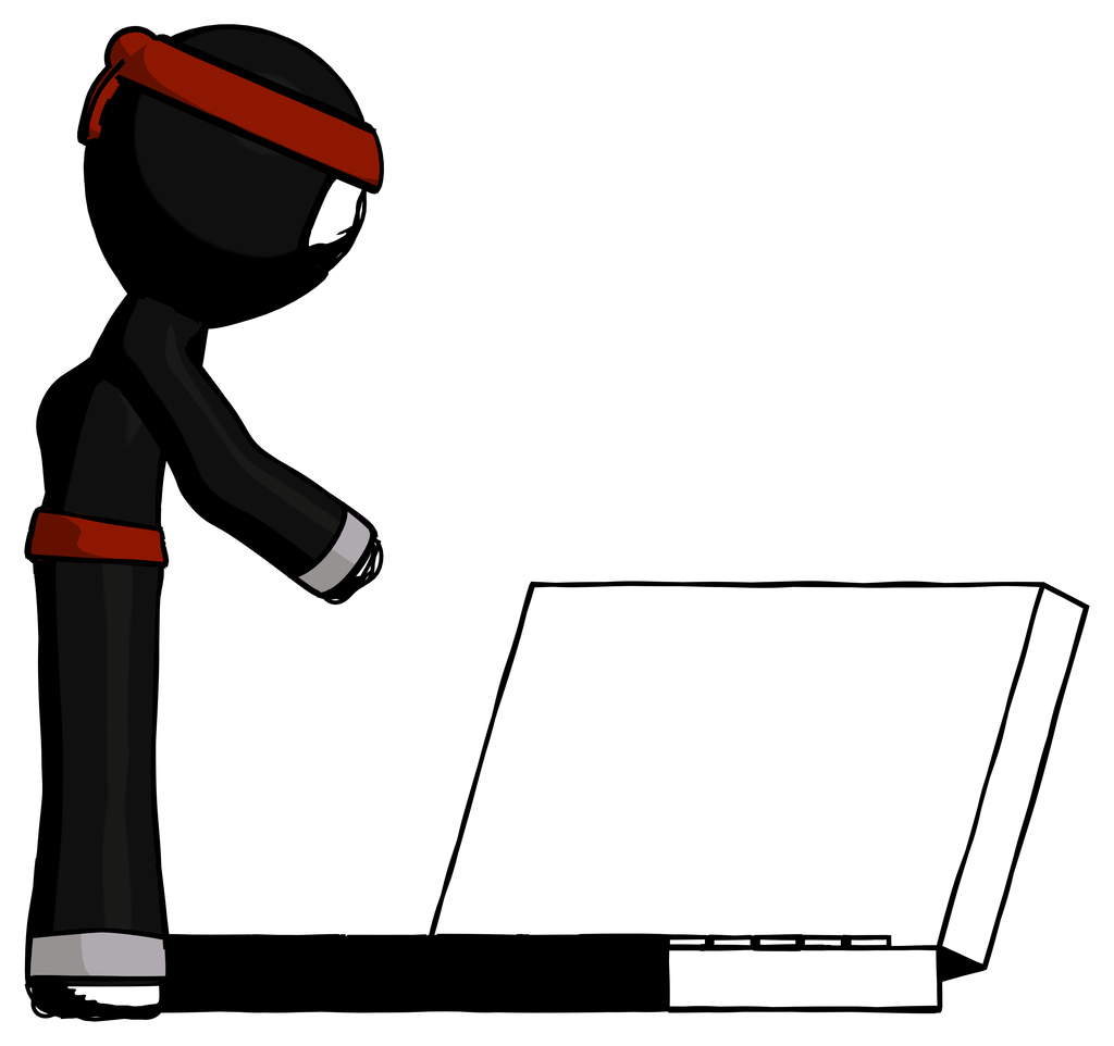 Ink Ninja Warrior Man using large laptop computer side orthographic view