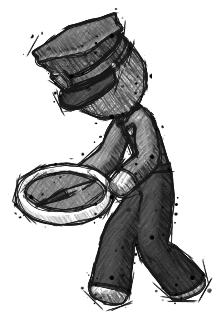 Sketch Police Man walking with large compass Keywords: police, policeman, officer, compass, holding, navigation, Pencil Drawing, security, uniform, hat, badge, cop, guard, justice, patrol, north, direction, symbol, south, arrow, red, east, west, travel, blue, discovery, exploration, color, equipment, explorer, explore, directional, looking, viewing, walking, hiking, lost, find, male, man, Drawing, Sketch, Art, Sketchy, Line, Doodle, Drawn, Stroke, Illustration