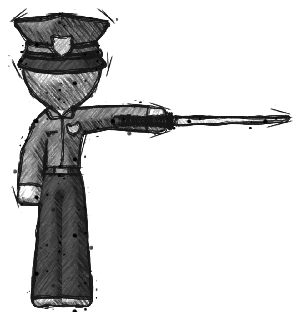 Sketch Police Man standing with ninja sword katana pointing right Keywords: police, policeman, officer, ninja, sword, katana, Pencil Drawing, security, uniform, hat, badge, cop, guard, justice, patrol, samurai, warrior, japanese, japan, weapon, martial, asian, blade, art, steel, black, metal, traditional, culture, swords, knife, martial arts, kung fun, fighter, defense, offence, pointing, point, male, man, Drawing, Sketch, Art, Sketchy, Line, Doodle, Drawn, Stroke, Illustration