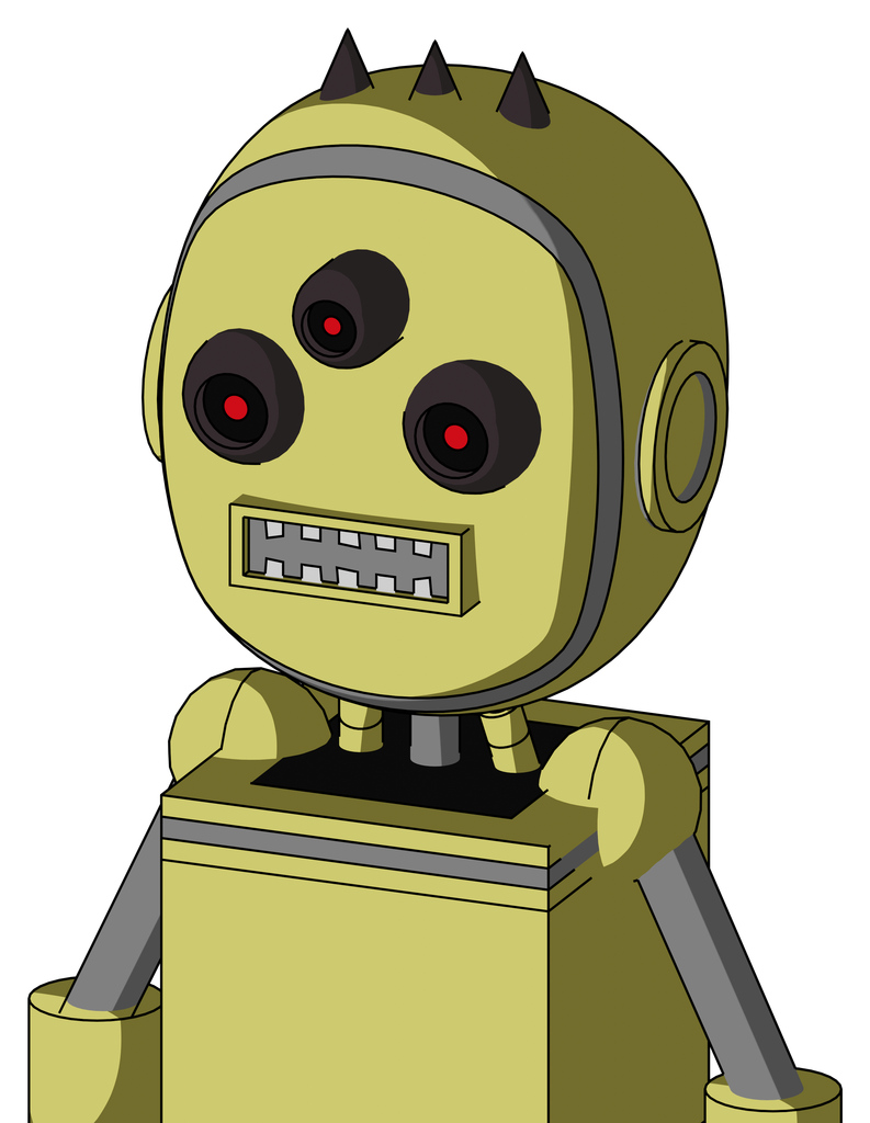 Yellow Robot With Bubble Head And Square Mouth And Three-Eyed And Three Dark Spikes