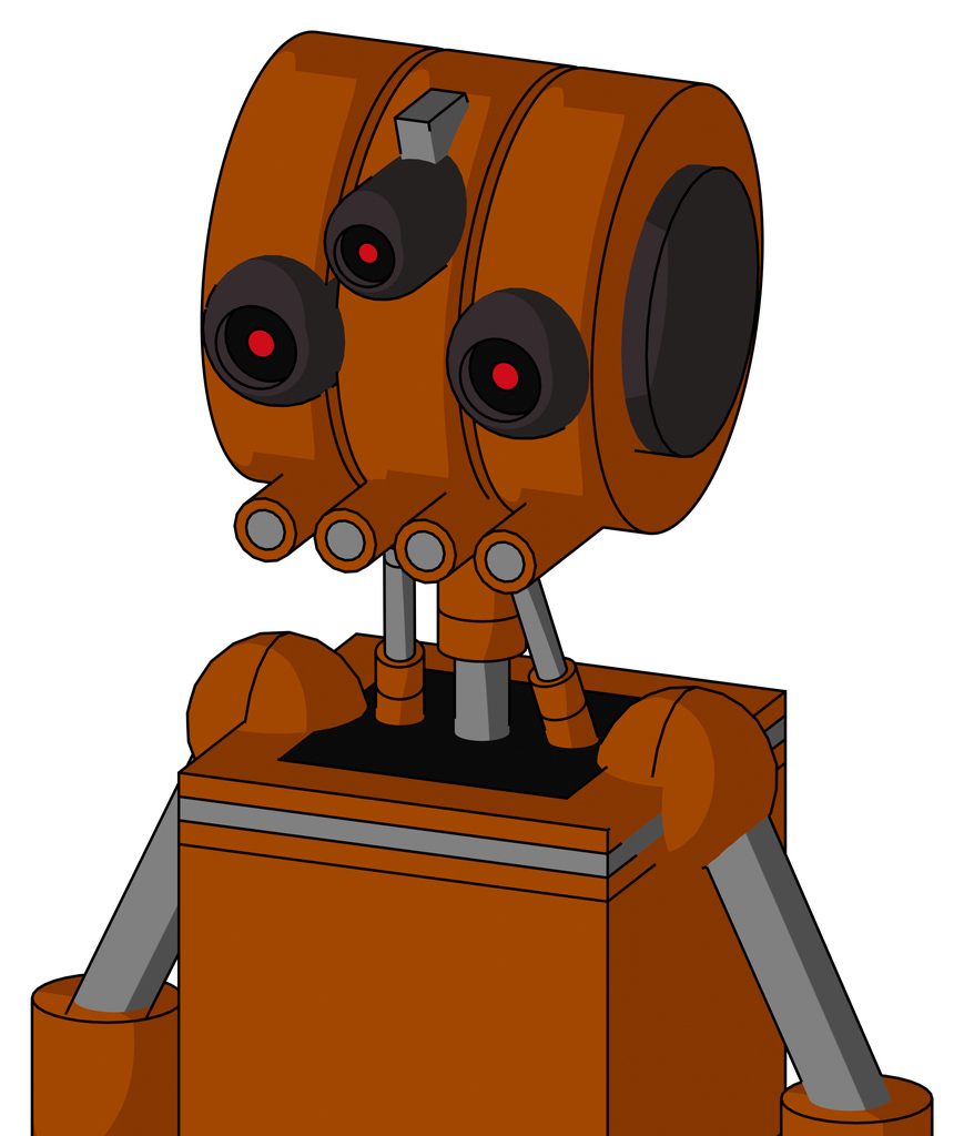 Redish-Orange Mech With Multi-Toroid Head And Pipes Mouth And Three-Eyed