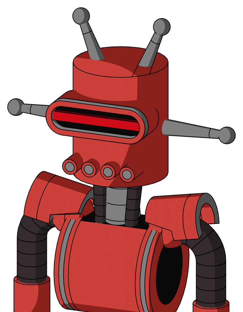 Tomato-Red Droid With Cylinder Head And Pipes Mouth And Visor Eye And Double Antenna