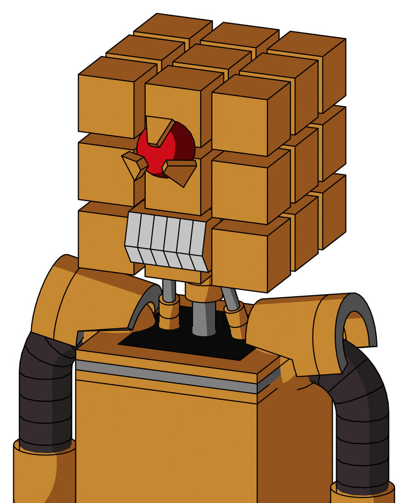 Peach Droid With Cube Head And Teeth Mouth And Angry Cyclops Eye