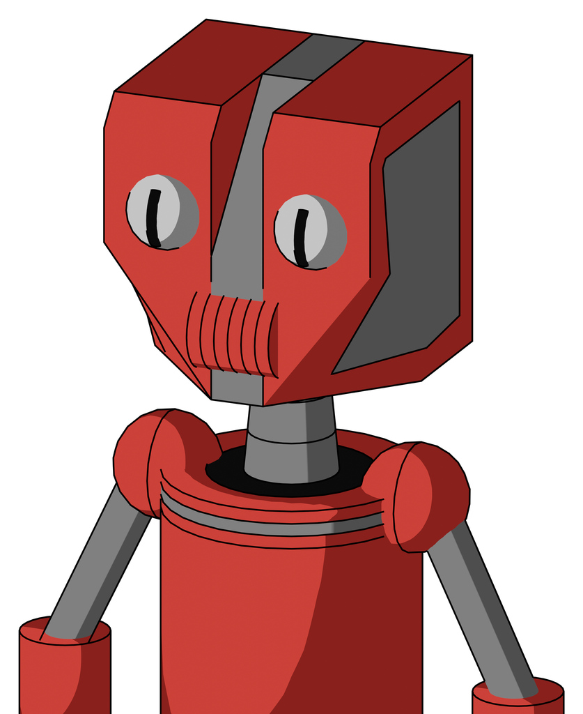 Tomato-Red Droid With Mechanical Head And Speakers Mouth And Two Eyes