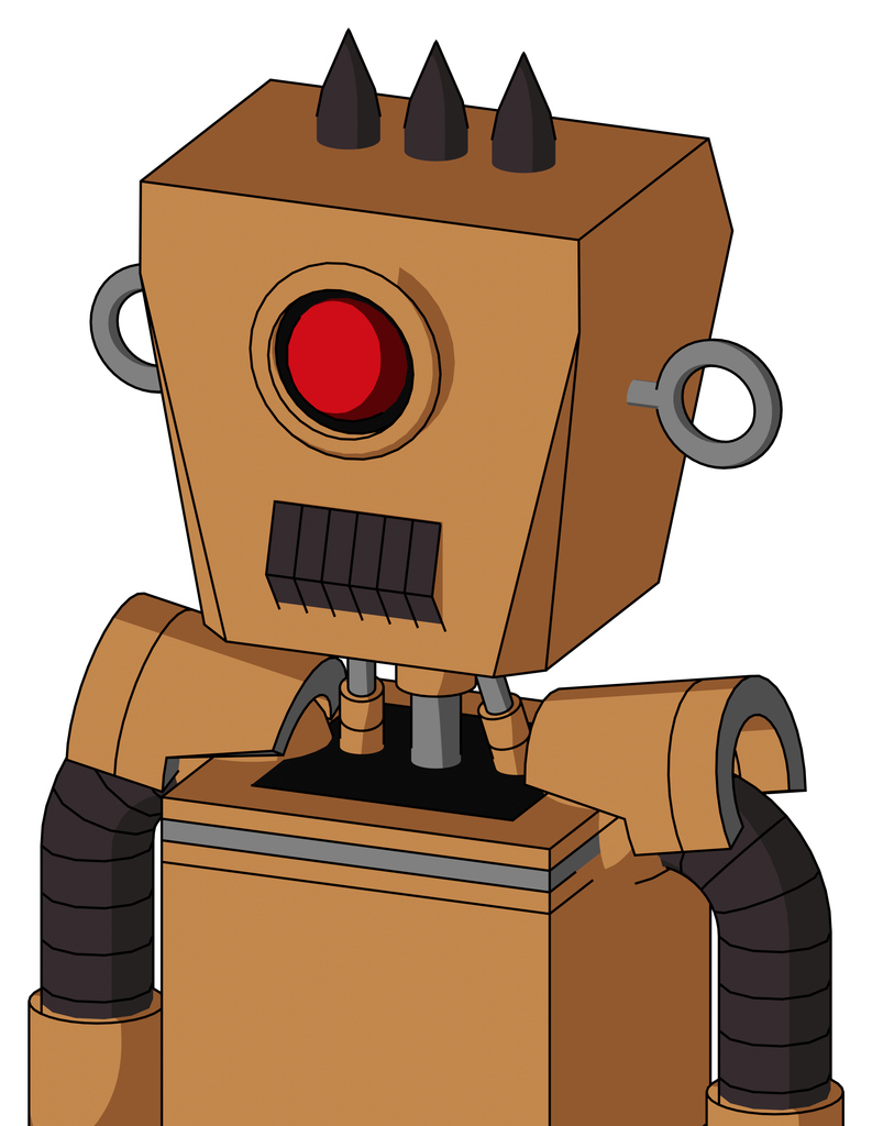 Peach Mech With Box Head And Dark Tooth Mouth And Cyclops Eye And Three Dark Spikes
