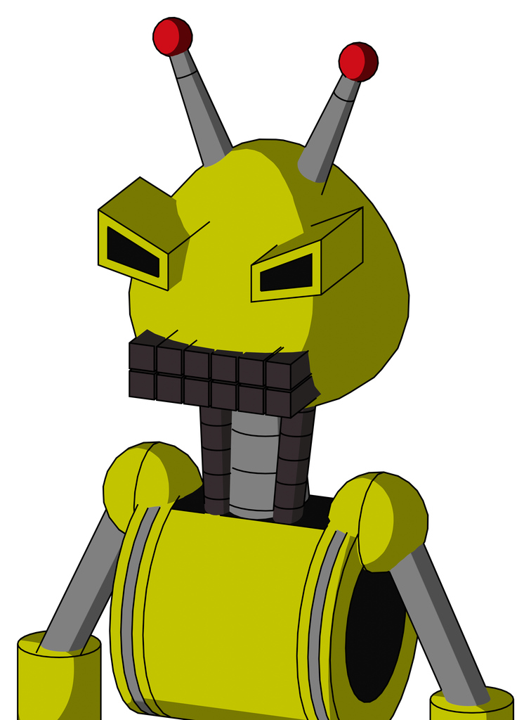 Yellow Robot With Rounded Head And Keyboard Mouth And Angry Eyes And Double Led Antenna