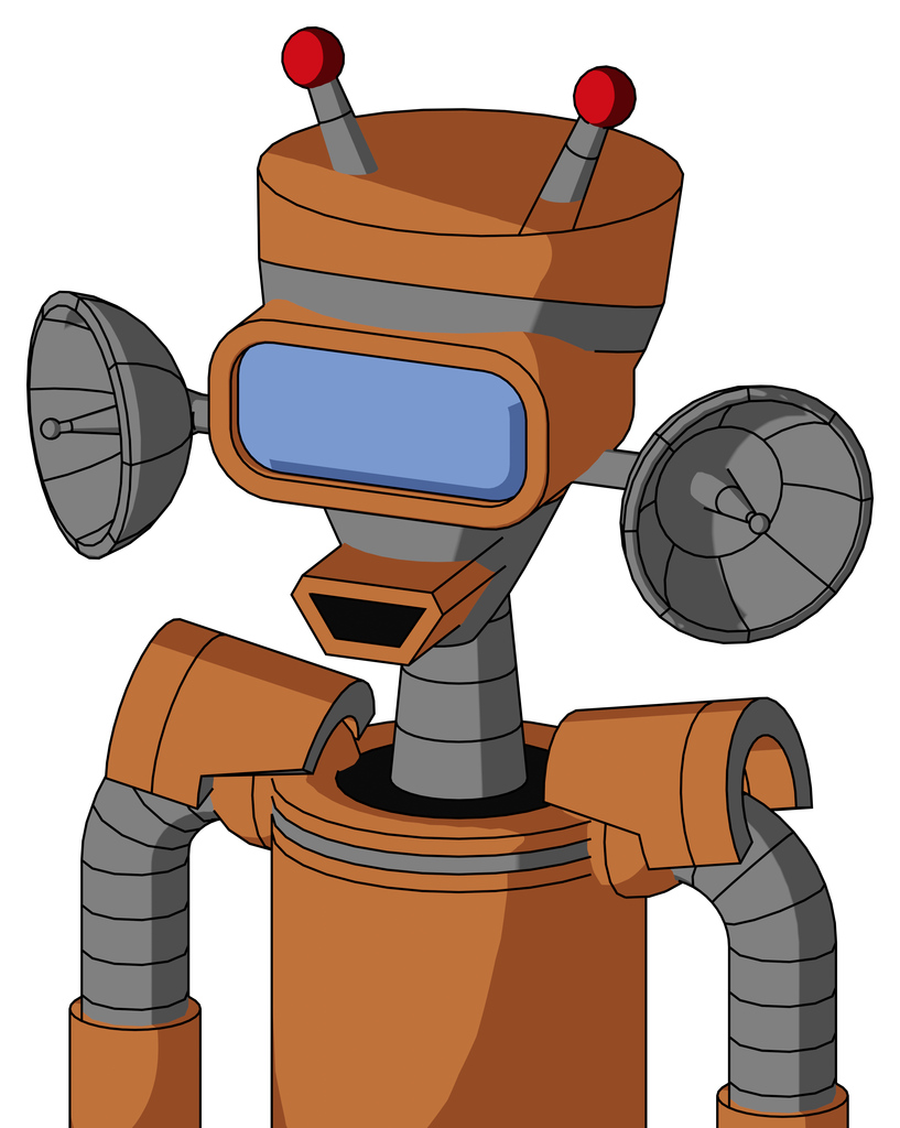 Orange Droid With Vase Head And Happy Mouth And Large Blue Visor Eye And Double Led Antenna