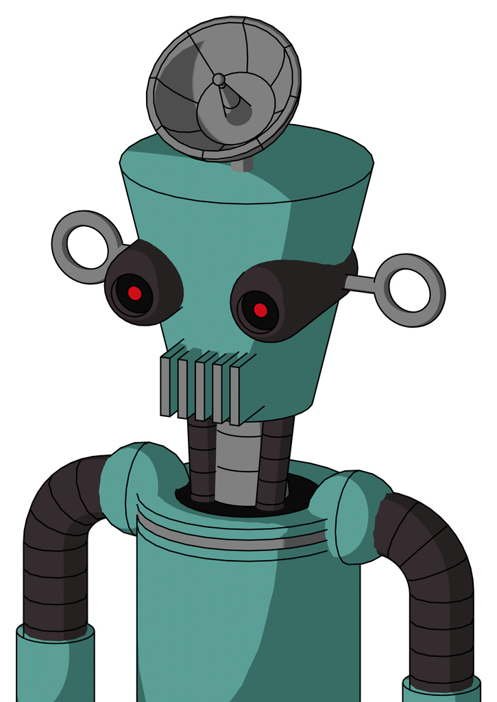 Greenish Mech With Cylinder-Conic Head And Vent Mouth And Black Glowing Red Eyes And Radar Dish Hat