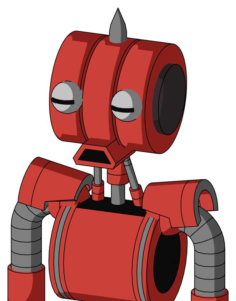 Tomato-Red Droid With Multi-Toroid Head And Sad Mouth And Two Eyes And Spike Tip