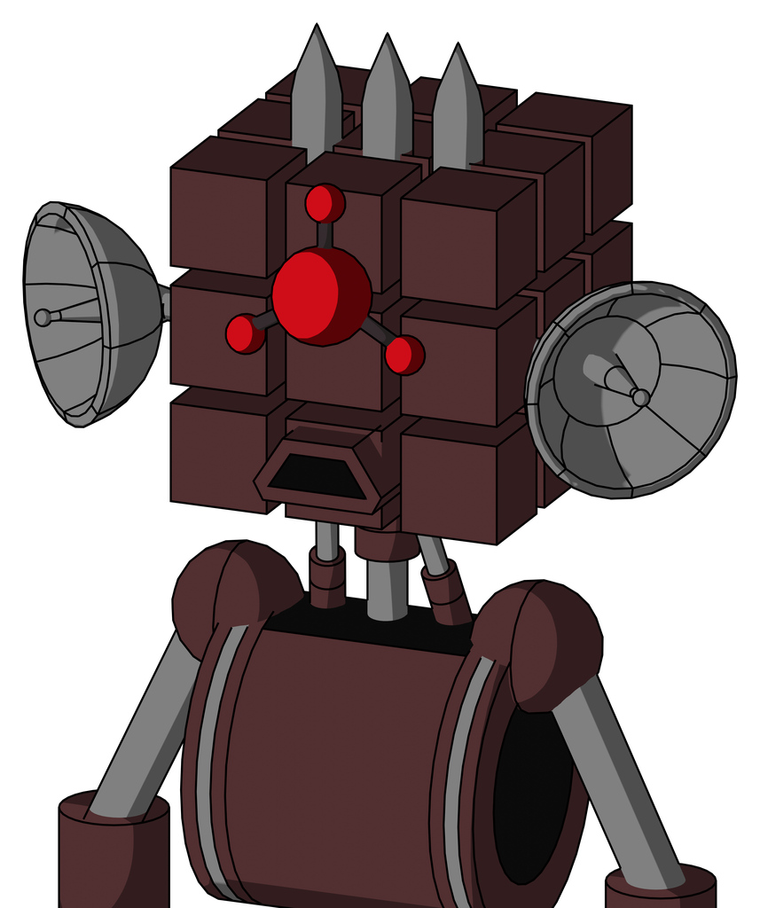Purple Droid With Cube Head And Sad Mouth And Cyclops Compound Eyes And Three Spiked