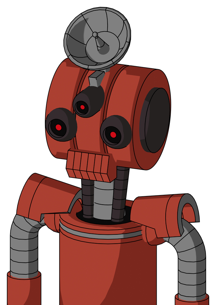 Red Automaton With Multi-Toroid Head And Toothy Mouth And Three-Eyed And Radar Dish Hat