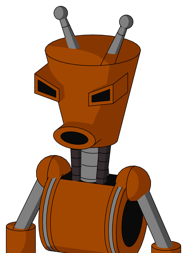 Redish-Orange Mech With Cylinder-Conic Head And Round Mouth And Angry Eyes And Double Antenna