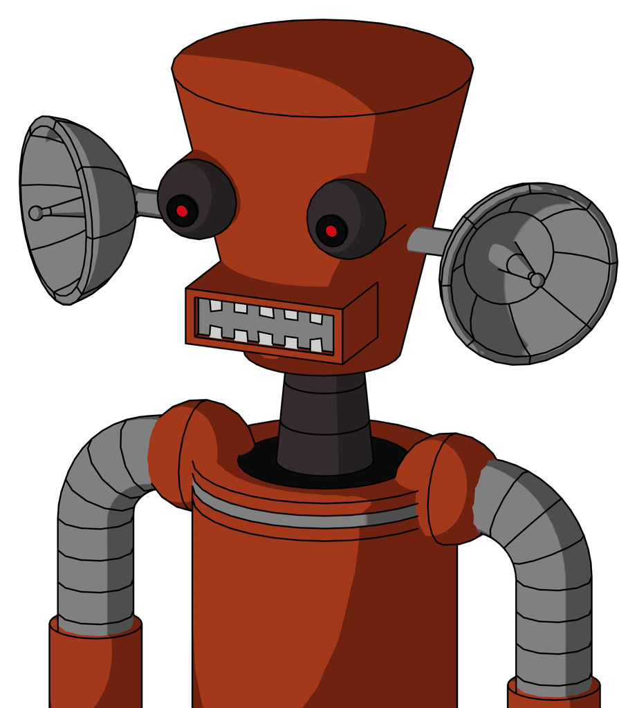 Orange Robot With Cylinder-Conic Head And Square Mouth And Red Eyed