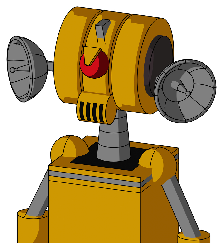 Yellow Robot With Multi-Toroid Head And Speakers Mouth And Angry Cyclops