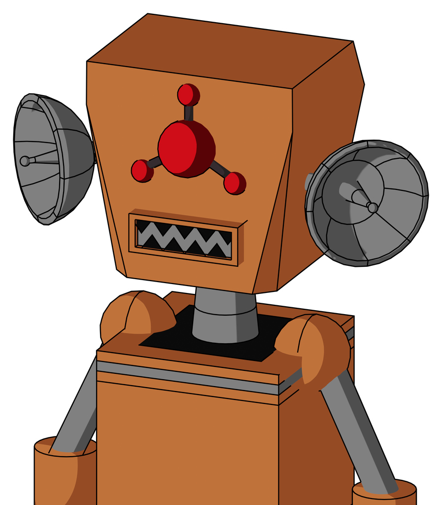 Orange Droid With Box Head And Square Mouth And Cyclops Compound Eyes