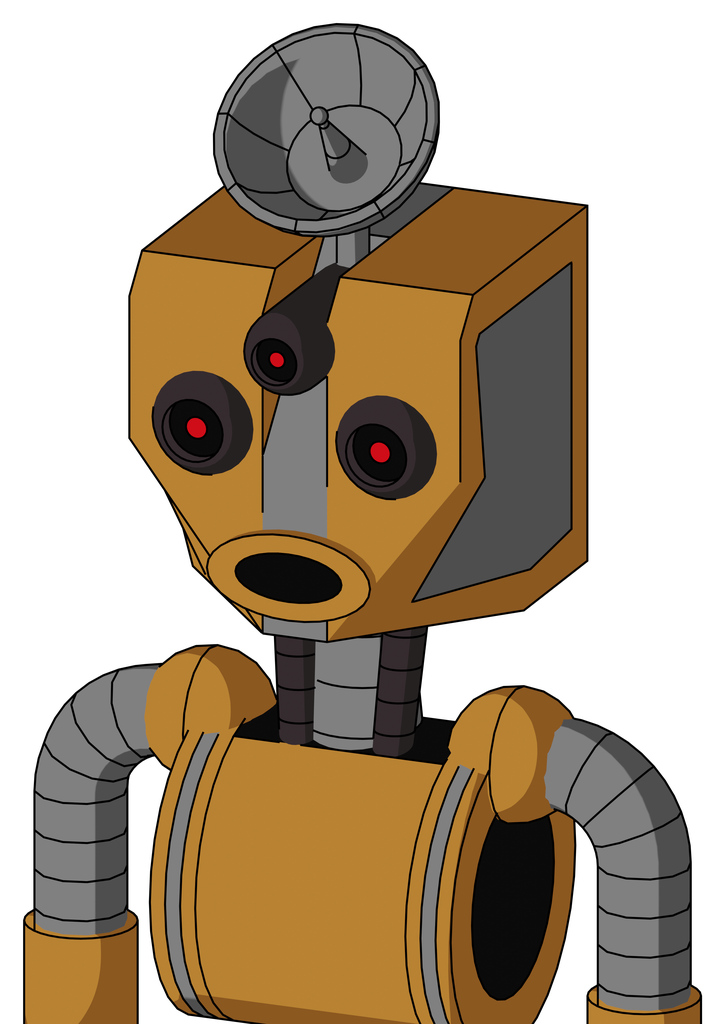 Yellowish Droid With Mechanical Head And Round Mouth And Three-Eyed And Radar Dish Hat