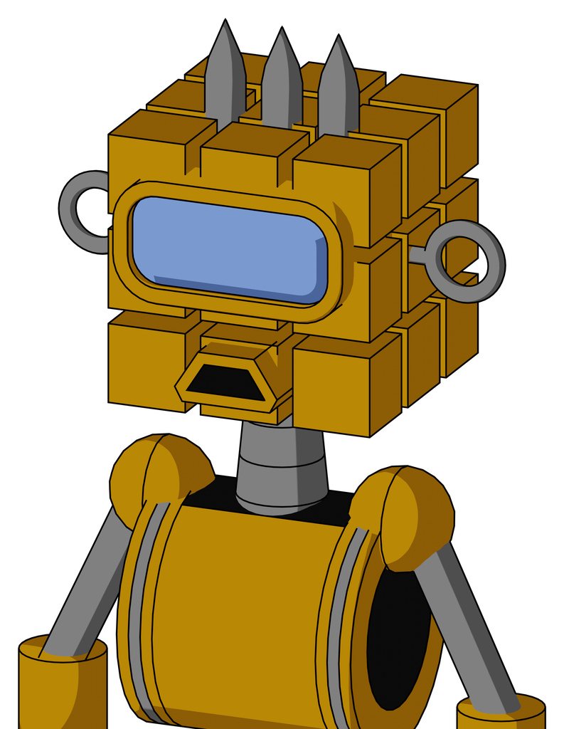 Yellow Droid With Cube Head And Sad Mouth And Large Blue Visor Eye And Three Spiked