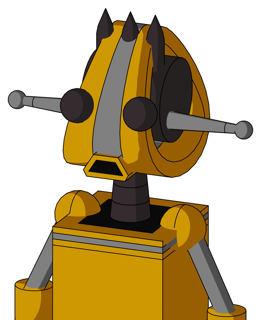 Yellow Robot With Droid Head And Sad Mouth And Two Eyes And Three Dark Spikes