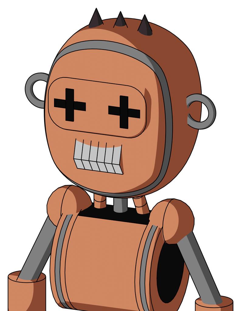 Peach Robot With Bubble Head And Teeth Mouth And Plus Sign Eyes And Three Dark Spikes