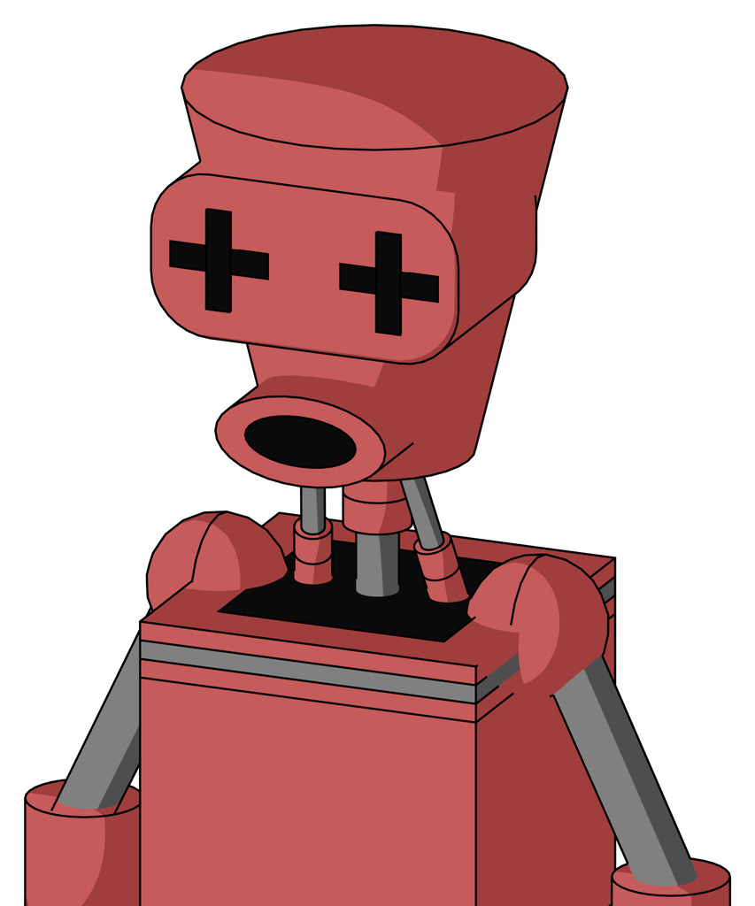 Pinkish Mech With Cylinder-Conic Head And Round Mouth And Plus Sign Eyes