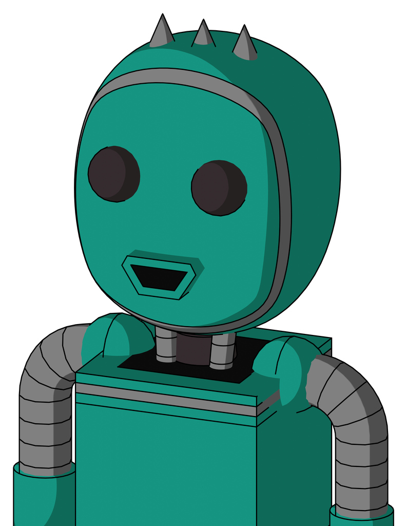 Green Automaton With Bubble Head And Happy Mouth And Two Eyes And Three Spiked