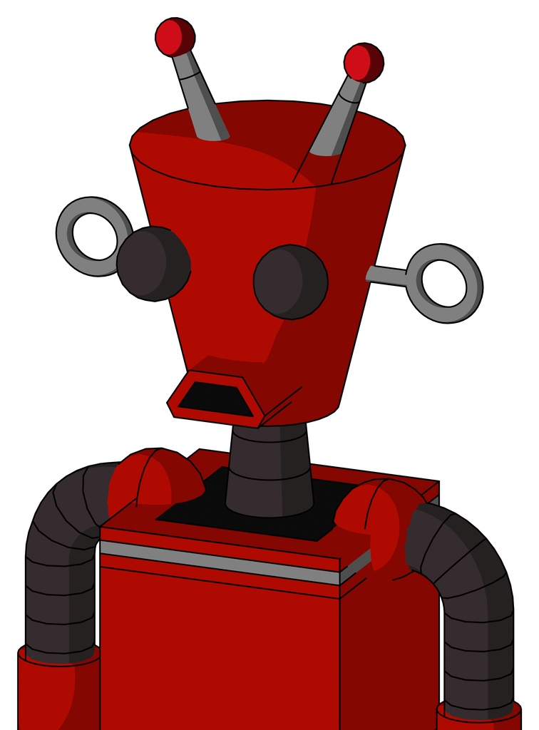 Red Mech With Cylinder-Conic Head And Sad Mouth And Two Eyes And Double Led Antenna
