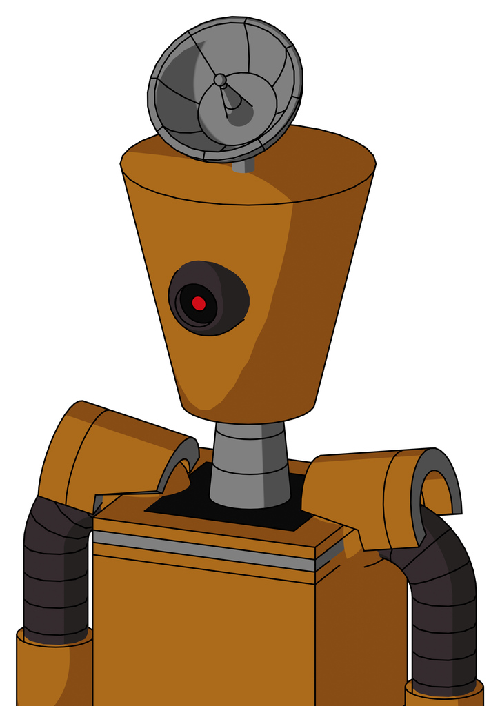 Dirty-Orange Mech With Cylinder-Conic Head And Black Cyclops Eye And Radar Dish Hat