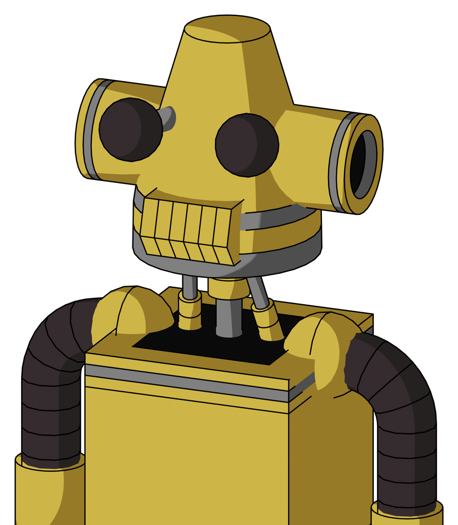 Yellow Droid With Cone Head And Toothy Mouth And Two Eyes