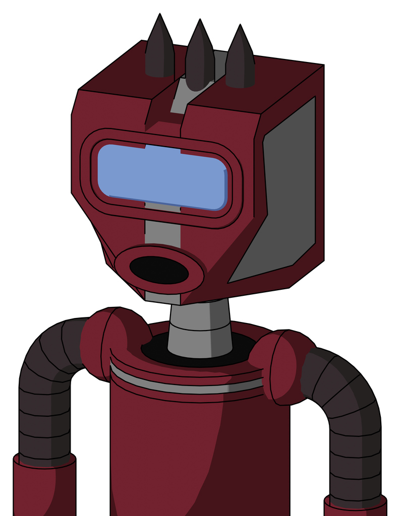 Red Droid With Mechanical Head And Round Mouth And Large Blue Visor Eye And Three Dark Spikes