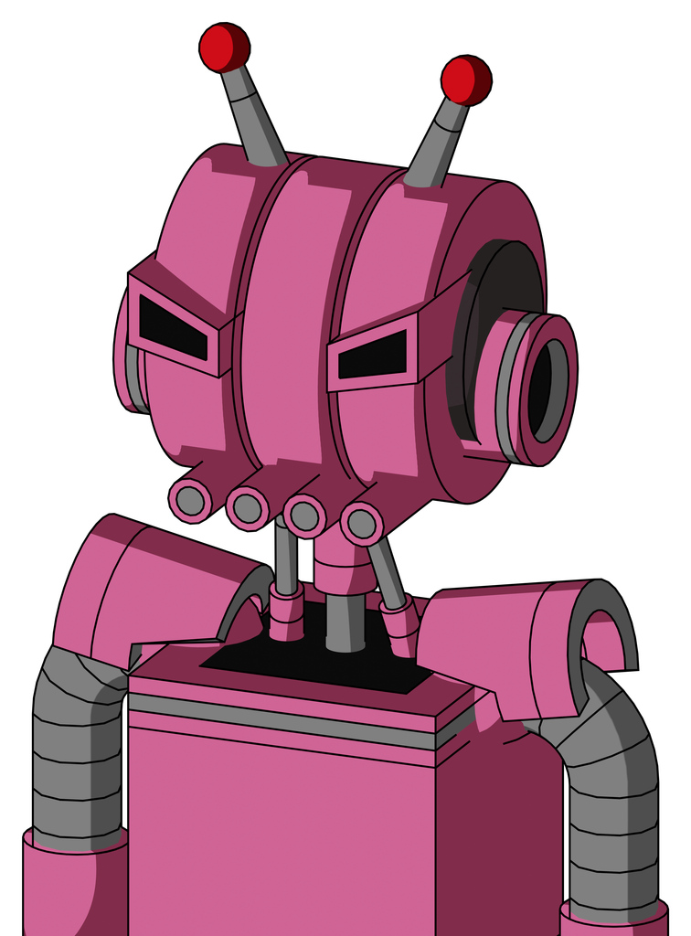 Pink Robot With Multi-Toroid Head And Pipes Mouth And Angry Eyes And Double Led Antenna