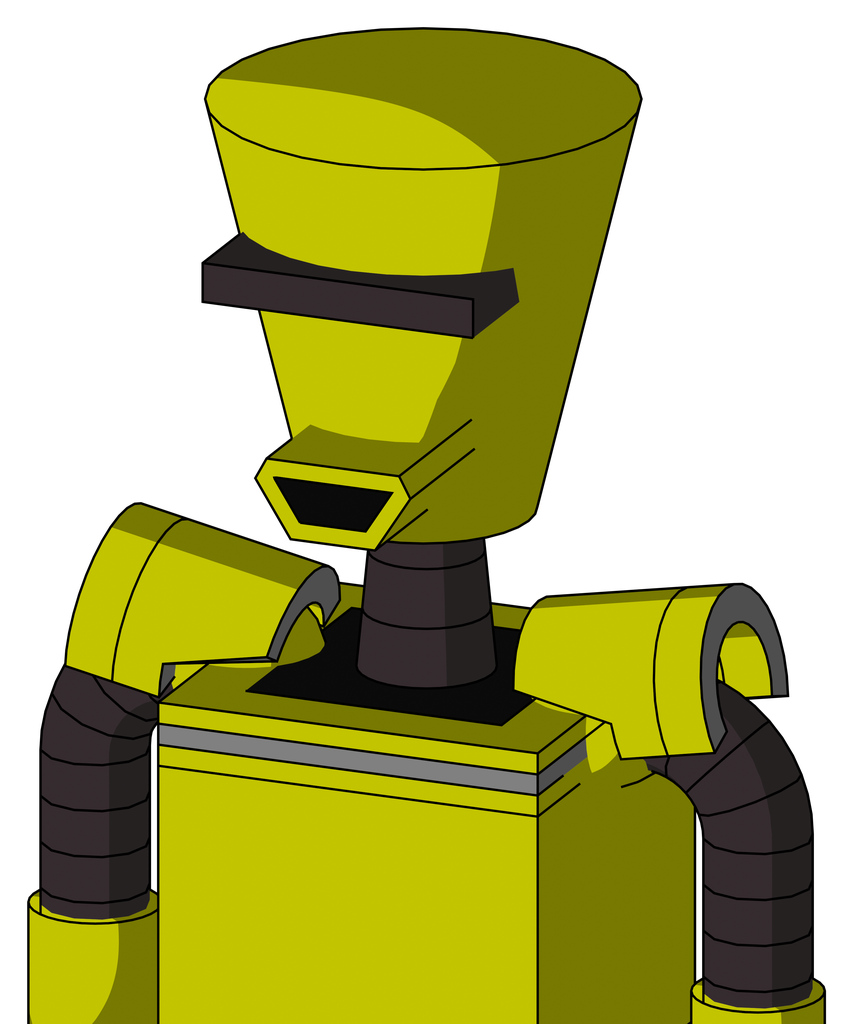 Yellow Robot With Cylinder-Conic Head And Happy Mouth And Black Visor Cyclops