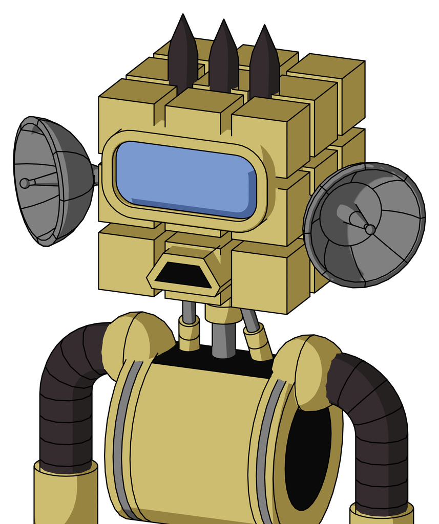 Yellow Droid With Cube Head And Sad Mouth And Large Blue Visor Eye And Three Dark Spikes