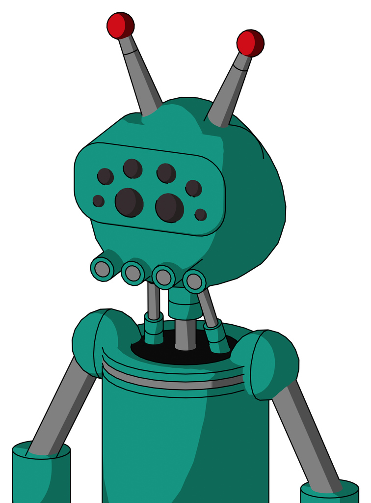 Green Automaton With Rounded Head And Pipes Mouth And Bug Eyes And Double Led Antenna