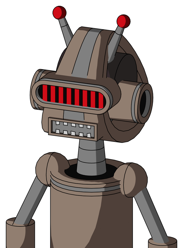 Gray Robot With Droid Head And Square Mouth And Visor Eye And Double Led Antenna