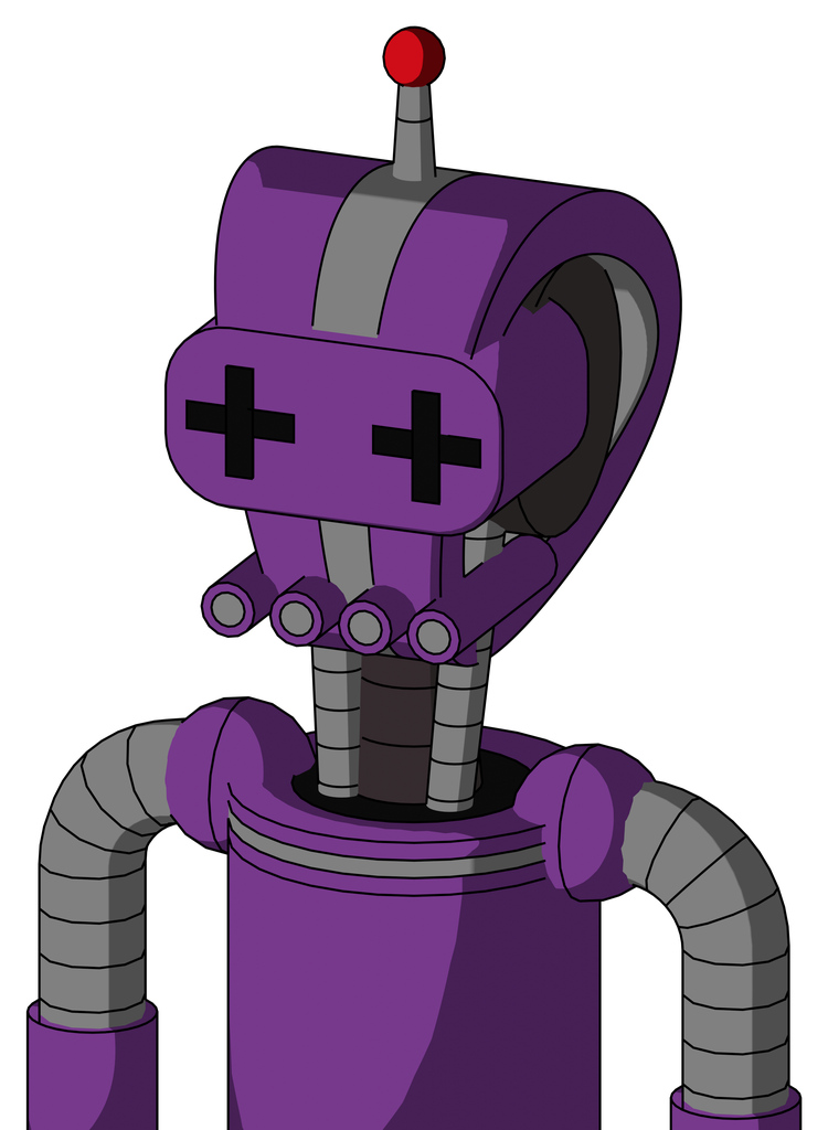 Purple Automaton With Droid Head And Pipes Mouth And Plus Sign Eyes And Single Led Antenna