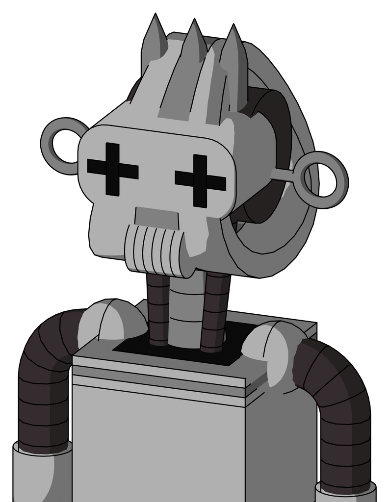 White Automaton With Droid Head And Speakers Mouth And Plus Sign Eyes And Three Spiked