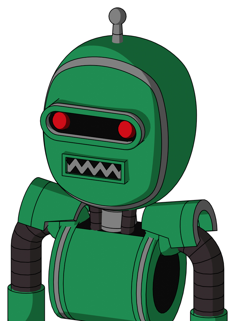 Green Automaton With Bubble Head And Square Mouth And Visor Eye And Single Antenna