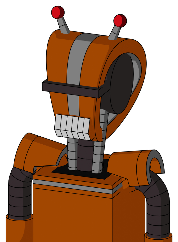 Redish-Orange Mech With Droid Head And Teeth Mouth And Black Visor Cyclops And Double Led Antenna
