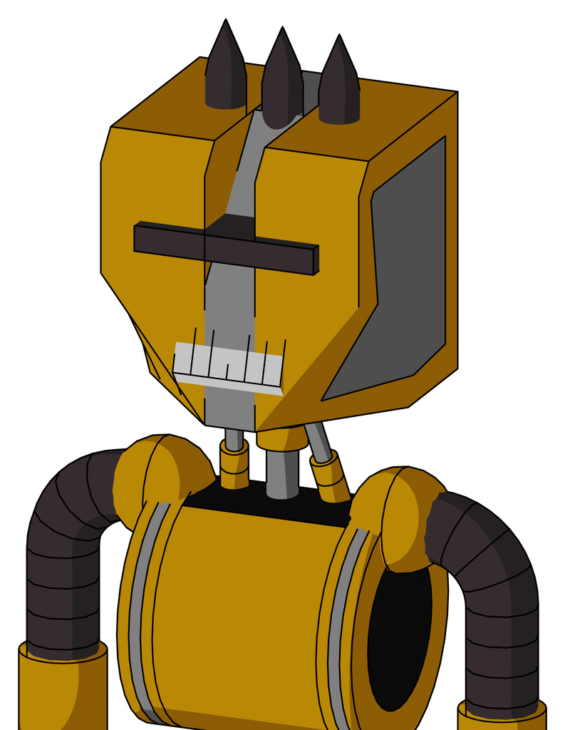 Yellow Droid With Mechanical Head And Teeth Mouth And Black Visor Cyclops And Three Dark Spikes