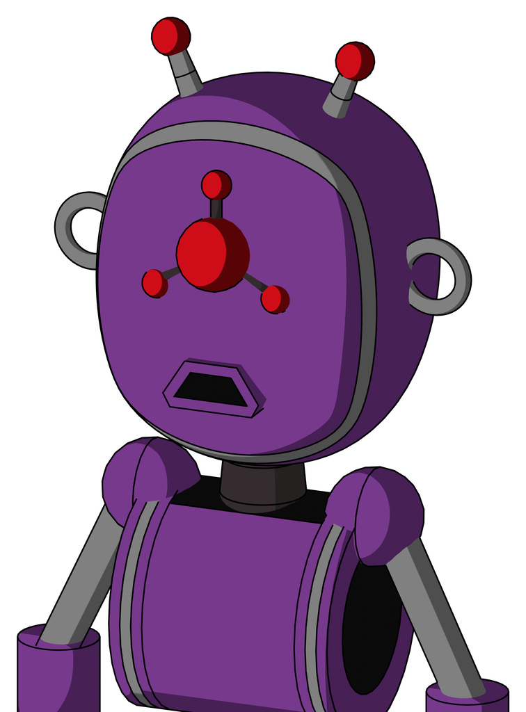 Purple Automaton With Bubble Head And Sad Mouth And Cyclops Compound Eyes And Double Led Antenna