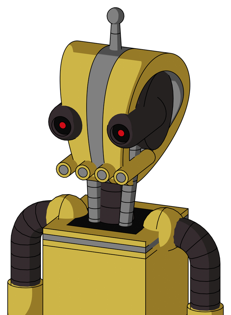Yellow Droid With Droid Head And Pipes Mouth And Black Glowing Red Eyes And Single Antenna