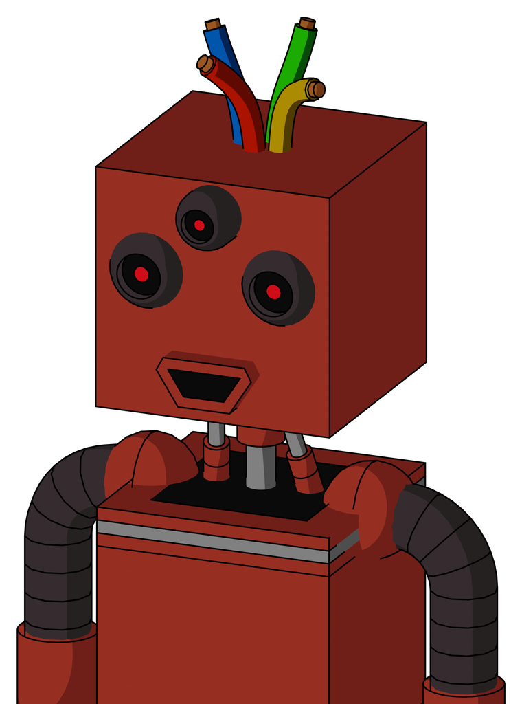 Red Automaton With Box Head And Happy Mouth And Three-Eyed And Wire Hair