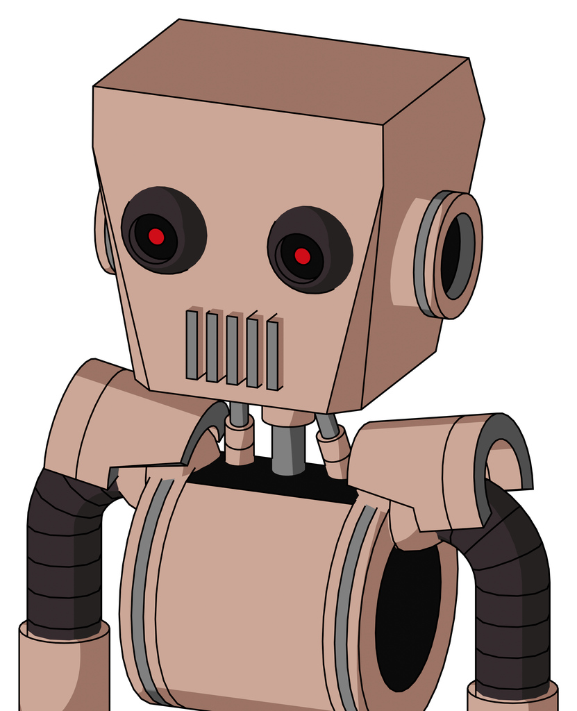 Light-Peach Mech With Box Head And Vent Mouth And Black Glowing Red Eyes