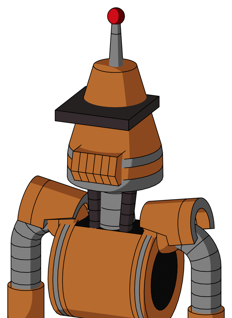 Orange Robot With Cone Head And Toothy Mouth And Black Visor Cyclops And Single Led Antenna
